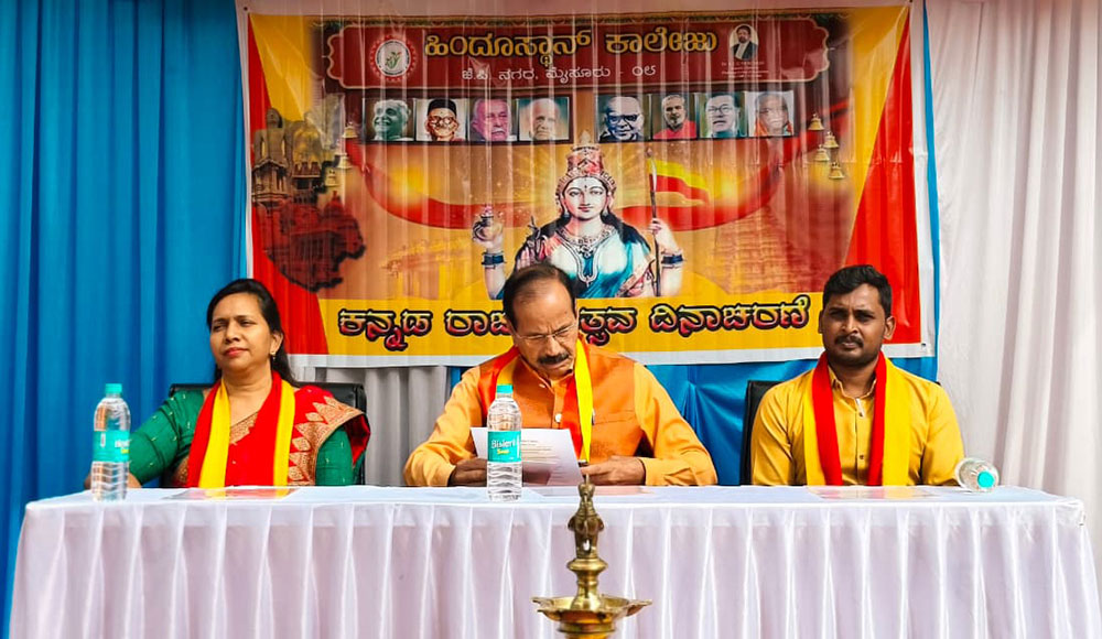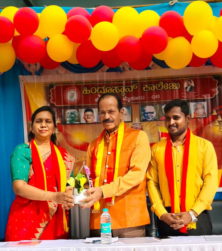 The Department of Languages (Kannada) celebrated 70th Kannada Rajyotsava on November 4, 2025, on the campus. The programme aimed to honour the rich cultural heritage, language, and traditions of Karnataka while instilling pride among students. The Chief Guest, Maddikere Gopal, District President, Kannada Sahitya Parishad, Mysore, underscores the importance of regional language in the ever-evolving dynamics of the present competitive world, and the responsibility of youth in preserving their mother tongue. The Principal, Dr. C. J. Priya, felicitated the Chief Guest, after which prizes were distributed to winners of various literary and cultural competitions held in connection with Kannada Rajyotsava. This was followed by the cultural programme featuring dance and singing performances that showcased Karnataka’s folk traditions.