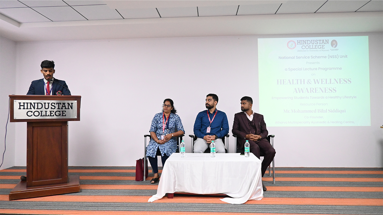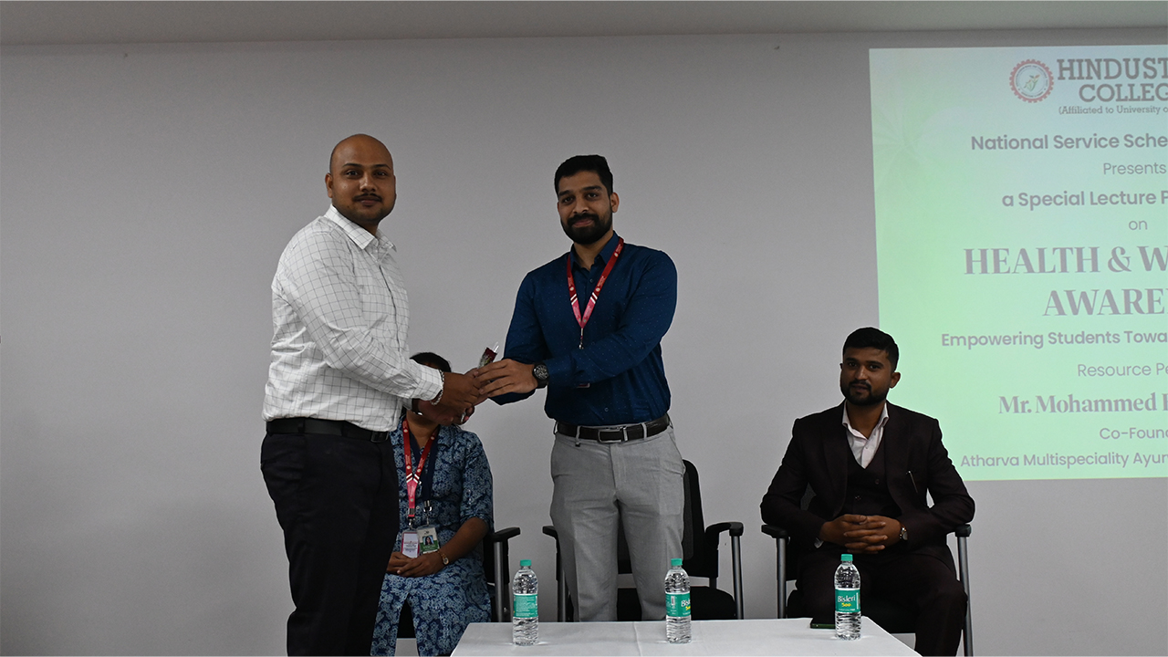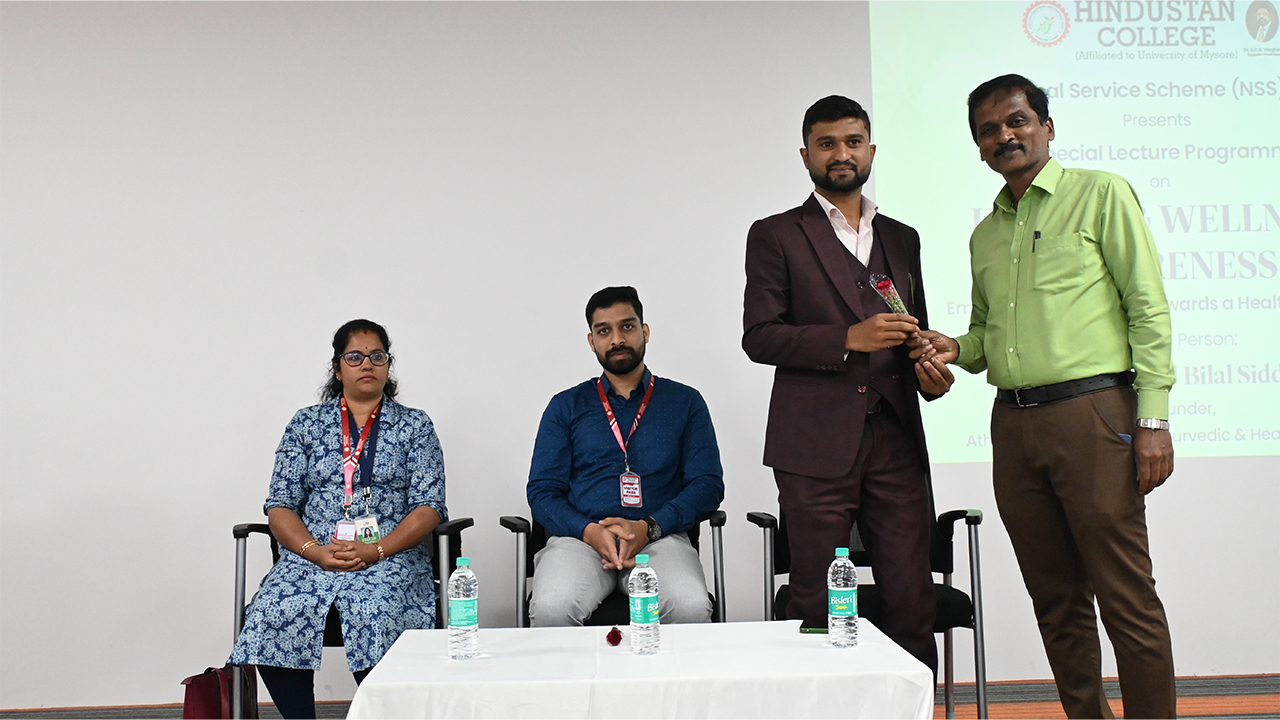 The National Service Scheme (NSS) Unit of the college organized a special lecture on Health & Wellness Awareness on Friday, 13th February 2026. The programme was conducted under the theme “Empowering Students Towards a Healthy Lifestyle. ”The session was addressed by Dr. Amarnath Bekal(BAMS, MD – Kayachikitsa) and Mr. Mohammed Bilal Siddiqui, Co-Founder of Atharva Multi Speciality Ayurvedic & Healing Centre, who served as the resource persons for the programme. The lecture focused on promoting holistic health and wellness among students, highlighting Ayurvedic principles and practical tips for maintaining a balanced and healthy lifestyle. The resource persons shared valuable insights on improving physical and mental well-being, encouraging students to adopt healthy habits in their daily lives. The session inspired students to develop awareness about health and wellness and motivated them to follow healthier lifestyle practices through the NSS initiative.