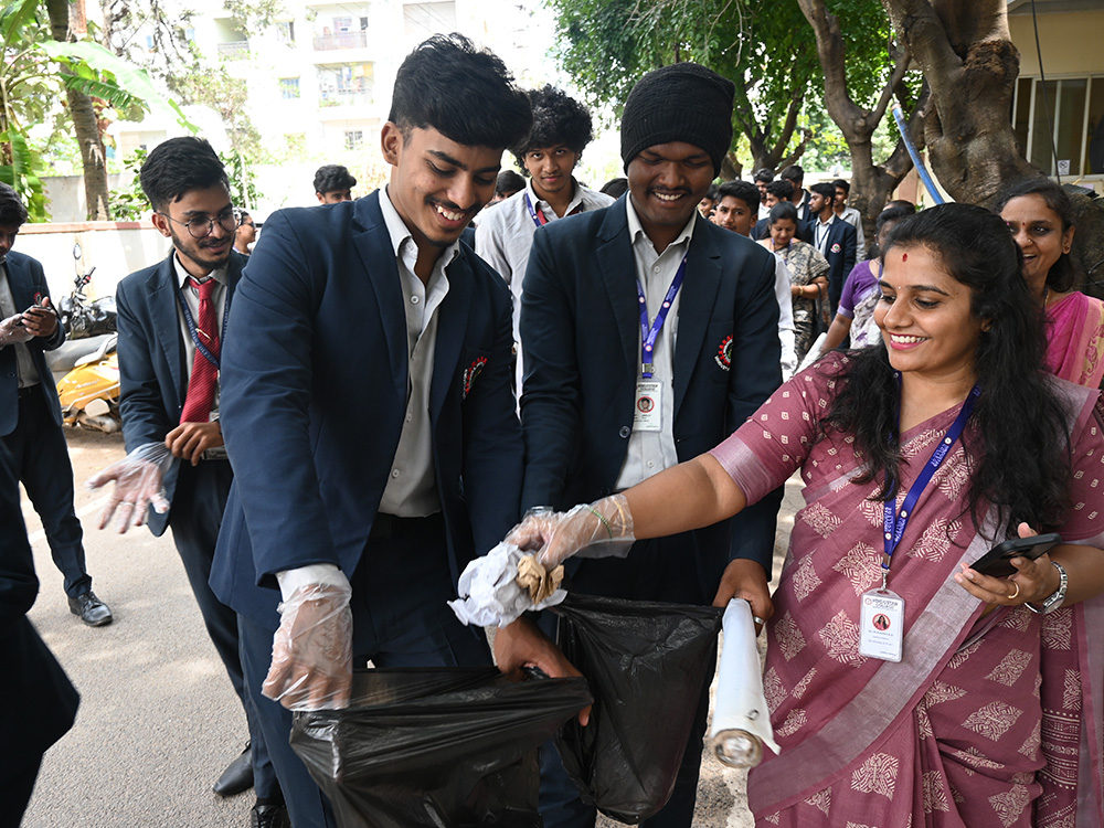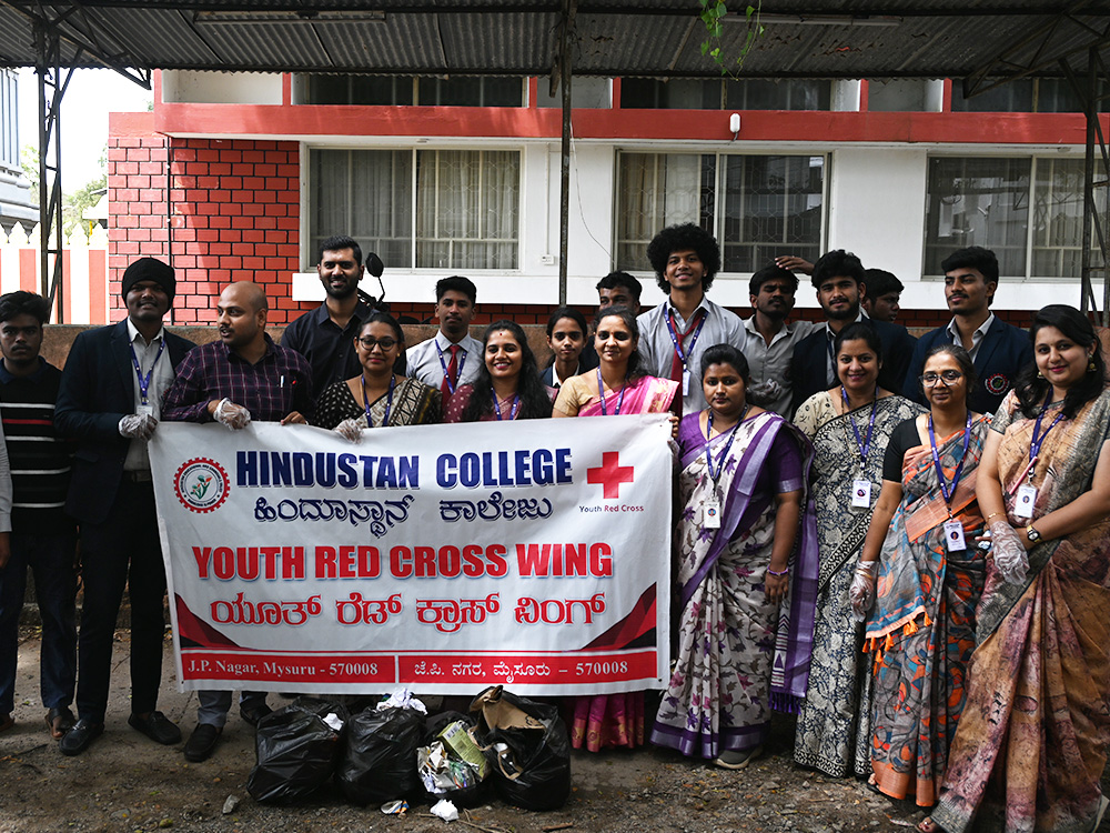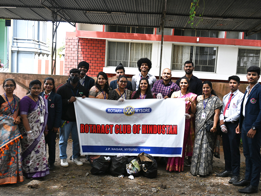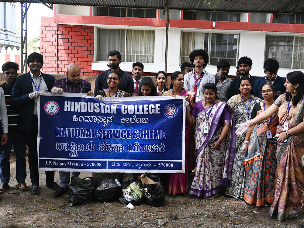 The NSS unit of Hindustan College, in association with Y’s Men’s Club of Mysuru Chamundi, the Youth Red Cross & Rotaract club of Hindustan, organized the Swachhata Hi Seva program at Hindustan Campus, J.P. Nagar, Mysore, on 3rd October 2025. The event was conducted to commemorate Gandhi Jayanti and to uphold the vision of cleanliness and social responsibility.
