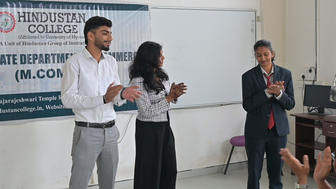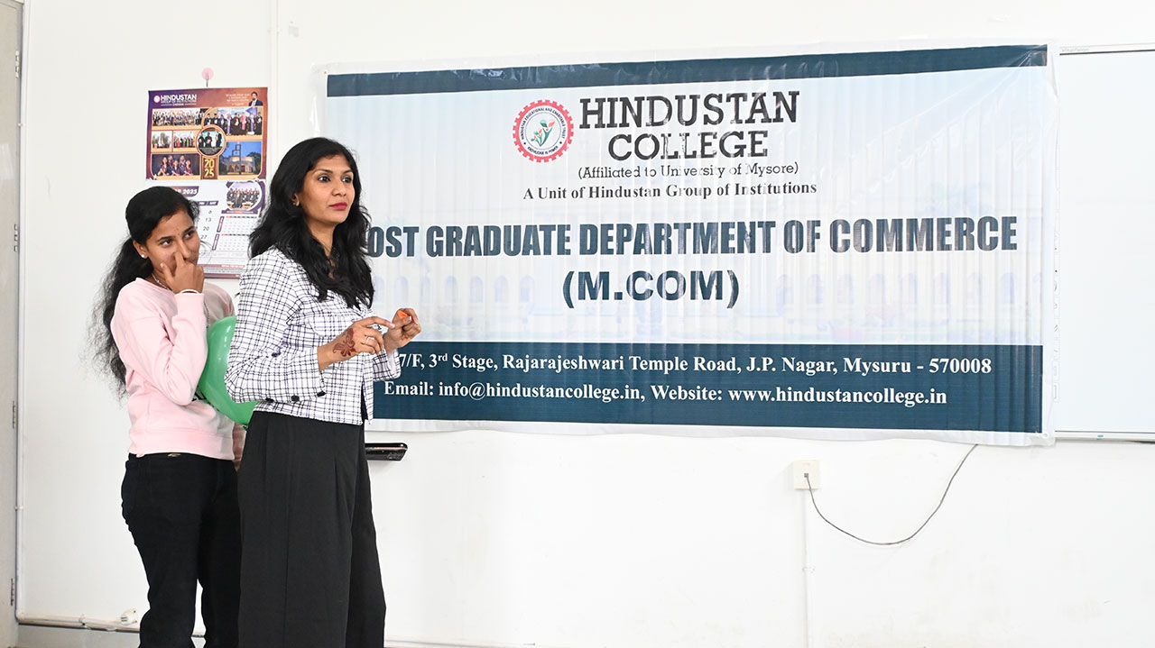 On 19th September, 2025, the postgraduate department of Commerce organized a dynamic Ice-Breaking Session on the premises. The session was specially designed to foster interaction, collaboration, and confidence among students as they begin a new academic journey. Ms. Thirtha Ponnamma, an accomplished trainer in communication and professional development, was the resource person for the program. With her engaging style, she conducted a variety of interactive activities, team-building tasks, and fun exercises that encouraged students to step out of their comfort zones and connect with their peers. The participants expressed that the session gave them a refreshing start to the academic year, instilled confidence, and motivated them to approach their studies with renewed energy.