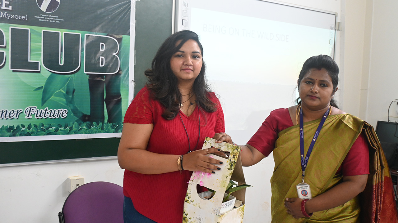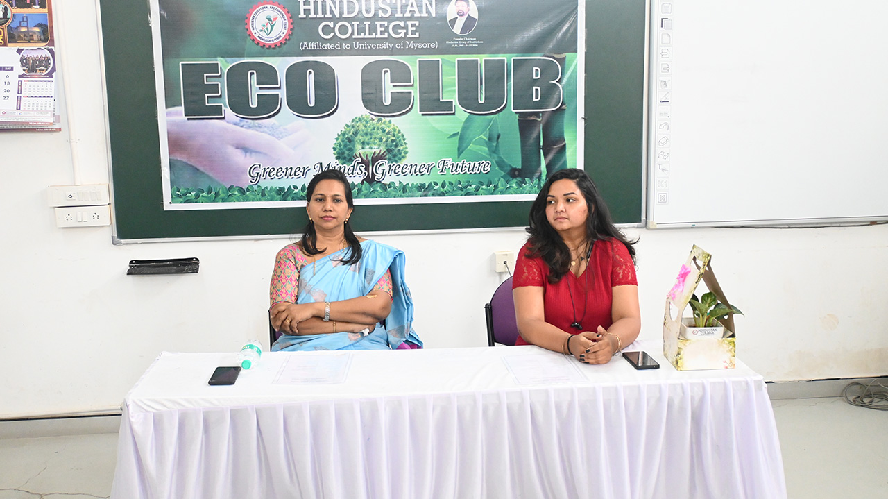 An unprecedented pro-nature Eco Club was inaugurated on 24th Sep., 2025, at the college in the presence of the Principal and the Chief Guest, Ms. Praneetha Monipi, Founder & Director, Adhvaya Beyond Barriers Foundation, Mysuru. In her address, the Chief Guest emphasized the importance of maintaining a clean and green environment and explained the objectives of the Eco Club. The Principal, in her address, encouraged the students to actively participate in the club’s activities, contribute towards keeping the campus and surroundings clean, and spread awareness about environmental protection. The formation of the Eco Club marked a significant step in fostering environmental responsibility among students and inspired them to take part in sustainable practices.
