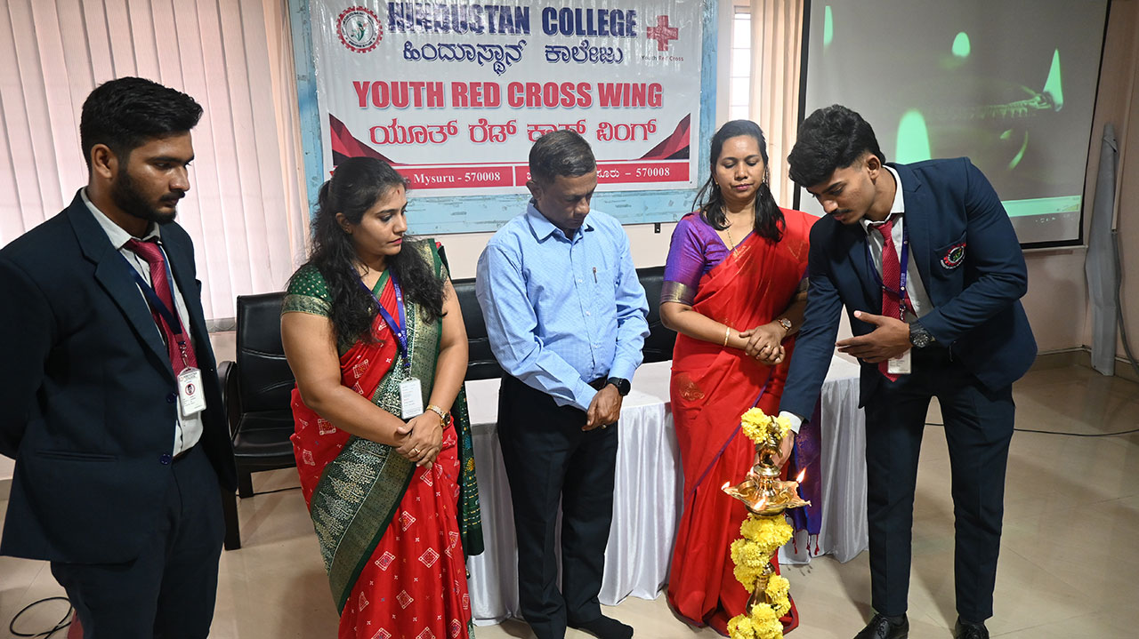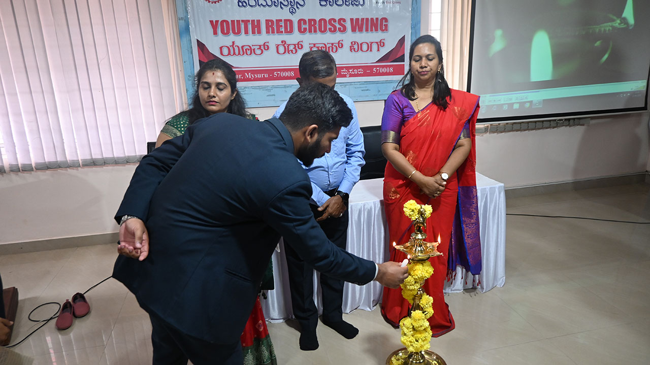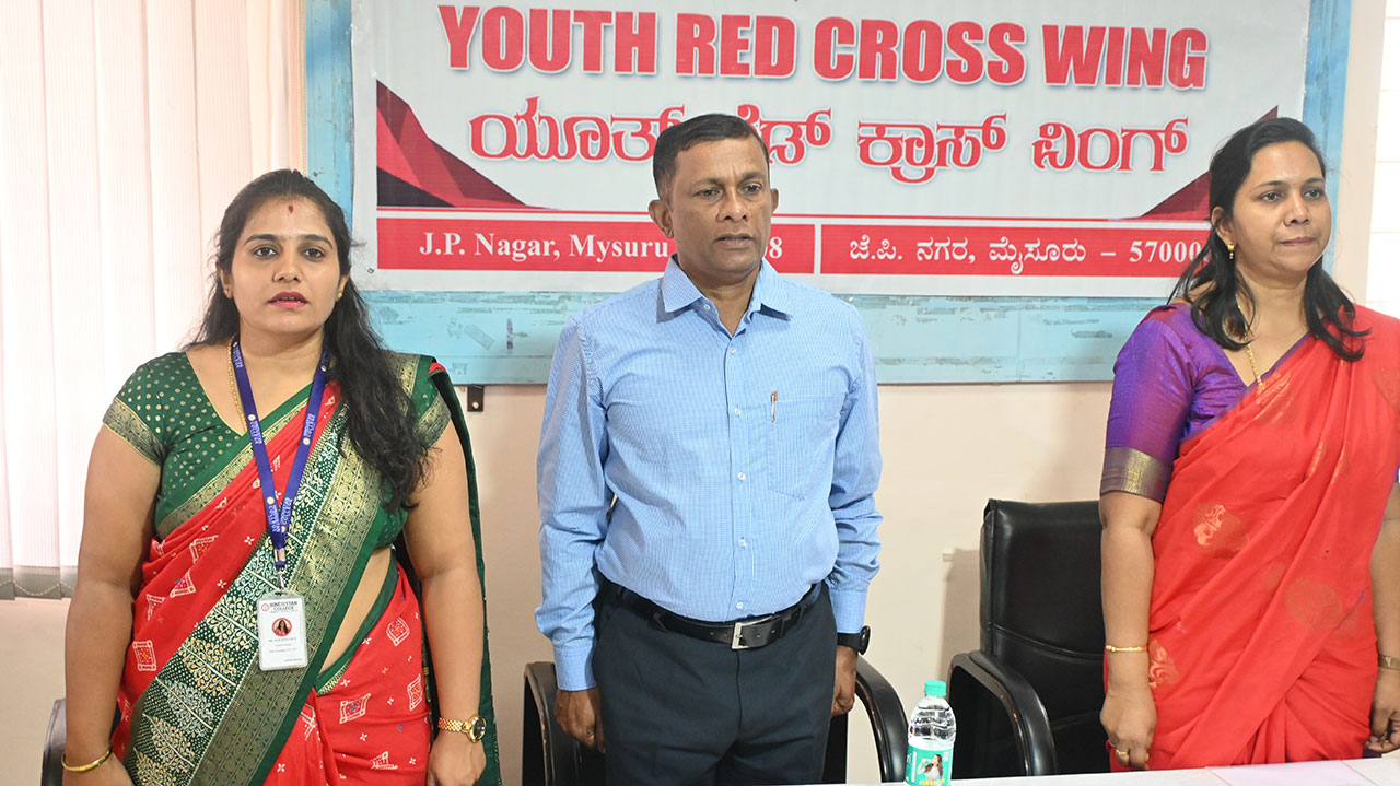 The inauguration of the Youth Red Cross Wing was held on 23rd September 2025 on the campus. The event was graced by Dr. Divakar Chandy, NCC Officer and Nodal Officer, Youth Red Cross Wing, University of Mysore, as the Chief Guest. In his inspiring address, he highlighted the importance of humanitarian service and the vital role of youth in fostering compassion, responsibility, and community welfare. The program successfully marked the beginning of a new chapter of social service and volunteerism at the institution, encouraging students to contribute actively to the values of the Red Cross movement.