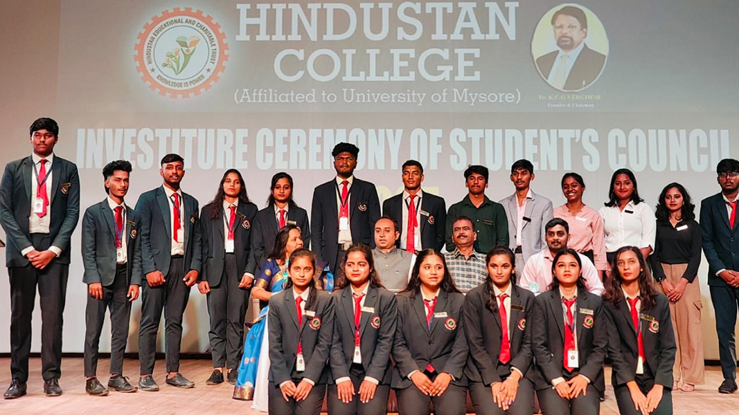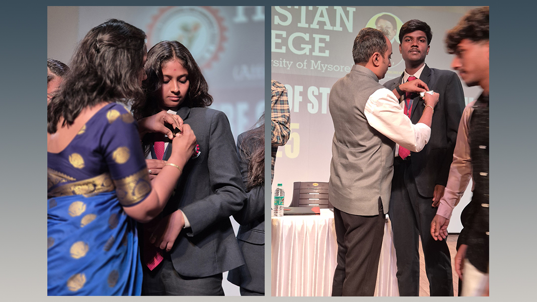The Investiture Ceremony for the Academic Year 2025-26 was held on 26th July 2025. The ceremony marked the formal installation of the newly elected Students’ Council Members, Class Representatives, and Rotaract Club office-bearers. The Principal introduced the newly elected members of the Students’ Council and led the oath-taking ceremony, inspiring them to discharge their duties with integrity, sincerity, and commitment. Prof. Nagaraj B, Chairman, DoS in Commerce, University of Mysore, presented badges to the newly elected Students’ Council Members, symbolizing their formal induction into leadership roles. A special address was delivered by Rtn. Prashanth M. P., Director, Rotary Youth Services, Mysore, who encouraged students to actively engage in community service, leadership development, and Rotaract initiatives. Badges were then conferred upon the newly appointed Rotaract Club members by Rtn. Prasanth M. P. formally inducts them into their roles. The Ceremony concluded on an inspiring note, instilling a strong sense of responsibility, leadership, and service among the newly inducted Student Council and Rotaract Club members.