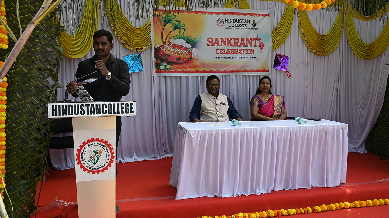 The Cultural Cluborganized the Sankranti Celebration on 16th January 2026, under the theme “Traditions & Togetherness.” The event aimed to celebrate Indian culture and foster a sense of unity among students and faculty members. The event featured a variety of cultural activities, including traditional games, festive dances, and melodious songs, which reflected the rich cultural heritage associated with the Sankranti festival. The Chief Guest, Dr.NanjayyaHonganuru, Professor, Department of Folklore, UoM, addressed the gathering and highlighted the importance of preserving Indian traditions and cultural values among the youth. The celebration witnessed enthusiastic participation from students, creating a vibrant and joyful atmosphere on the campus.