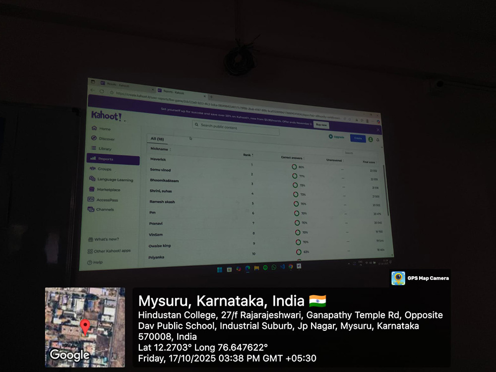 The TechConnect Club of the college organized TECHNO FUSION–2025: Inter-Class Treasure Hunt Competition on October 17, 2025. The event aimed to encourage teamwork, logical thinking, and problem-solving skills in a fun and engaging way. A total of 45 teams, each comprising 2 members, participated in the event. After an exhilarating and closely contested finale, the team comprising Dushyanth T. Raj and Mohammed Owaise from the 1st year BBA(AM) emerged as the winners, demonstrating outstanding problem-solving abilities and coordination.